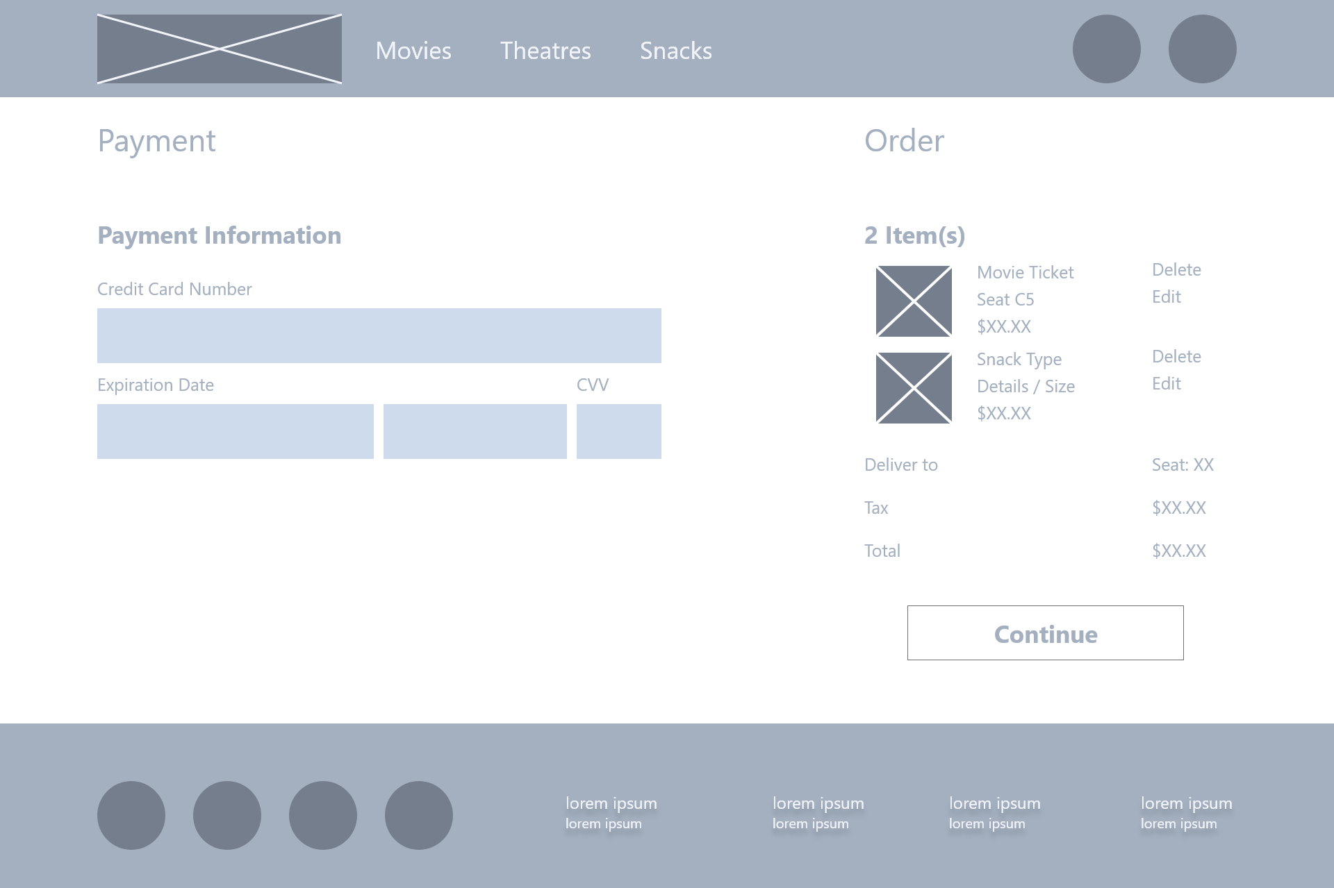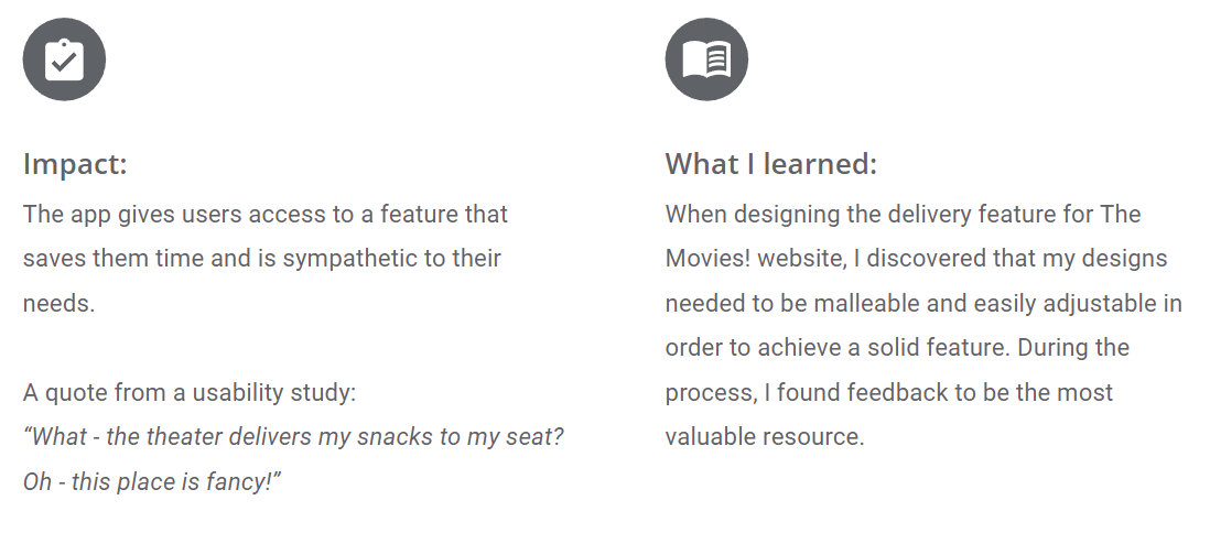 The Goal: Create a feature within The Movies! website that allows for delivery of concessions directly to the user.