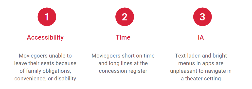 The Problem: Moviegoers often don’t have enough time to order snacks and get seated before their movie starts.