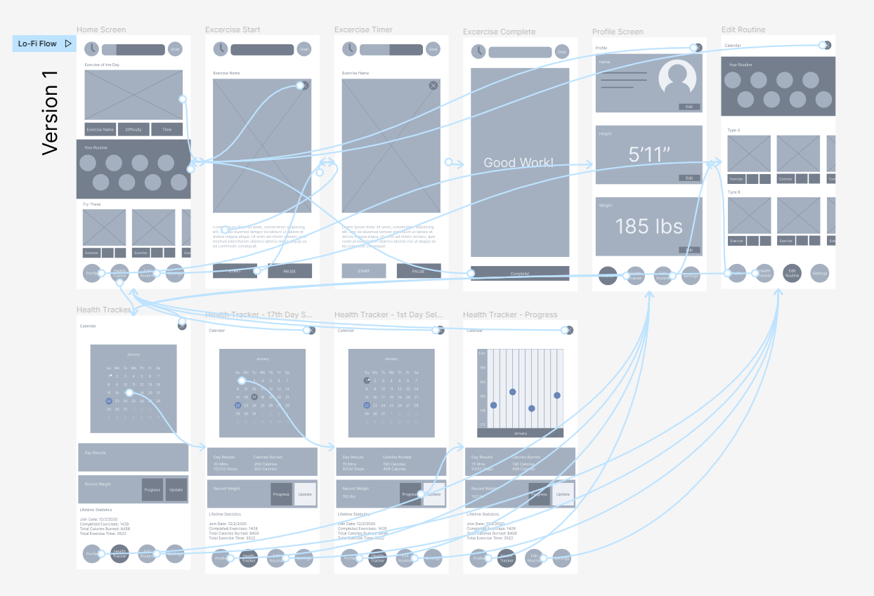 In preparation for the first round of usability studies, I prepped a low-fidelity prototype in Figma for testing.